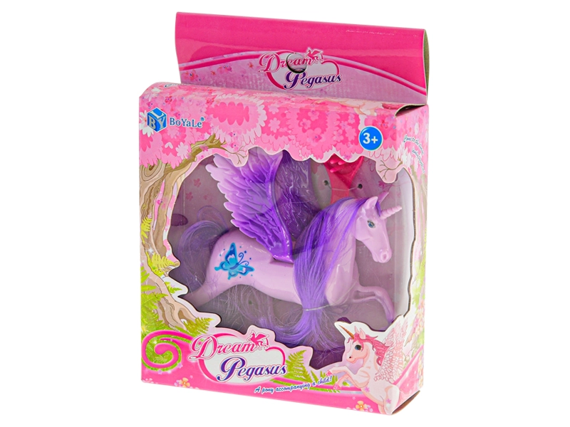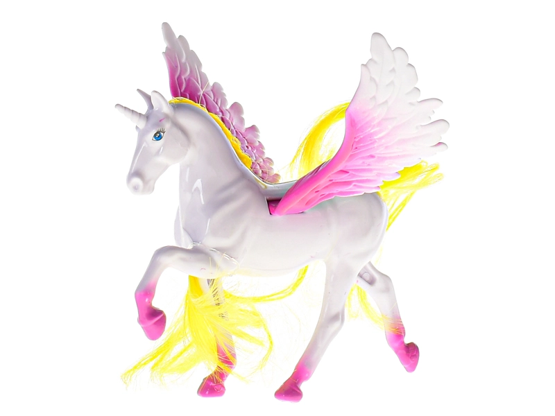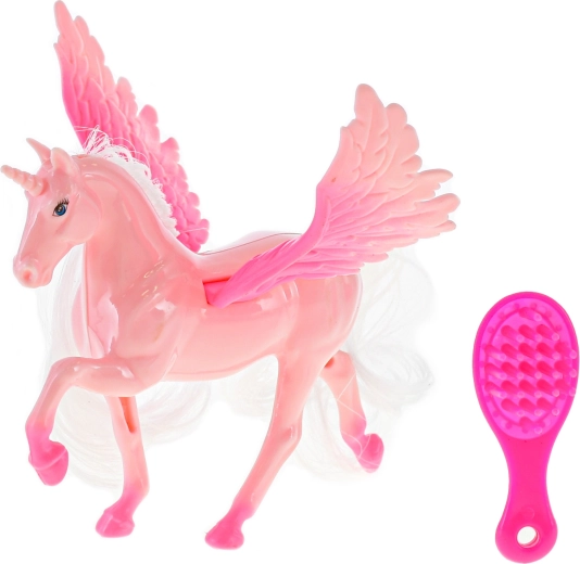 Okúzľujúci jednorožec s krídlami poteší všetkých malých milovníkov fantázie. Hračka má dlhú, farebnú hrivu, ktorú možno upravovať priloženým hrebeňom, a pohyblivý, stabilný stojan na jednoduché hranie aj vystavenie. Odolný plast zaisťuje dlhú životnosť a bezpečné používanie.