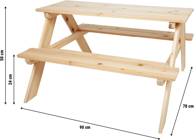 Univerzálny detský piknikový stôl z masívneho dreva s integrovanými lavičkami ponúka stabilitu, bezpečnosť a prirodzený vzhľad na vonkajšie aj vnútorné použitie. Vďaka robustnej konštrukcii, zaobleným hranám a pohodlnej výške sedadla je ideálny na stolovanie, tvorenie aj hranie. Neošetrené drevo možno ľahko povrchovo upraviť farbami či olejmi podľa vášho štýlu.