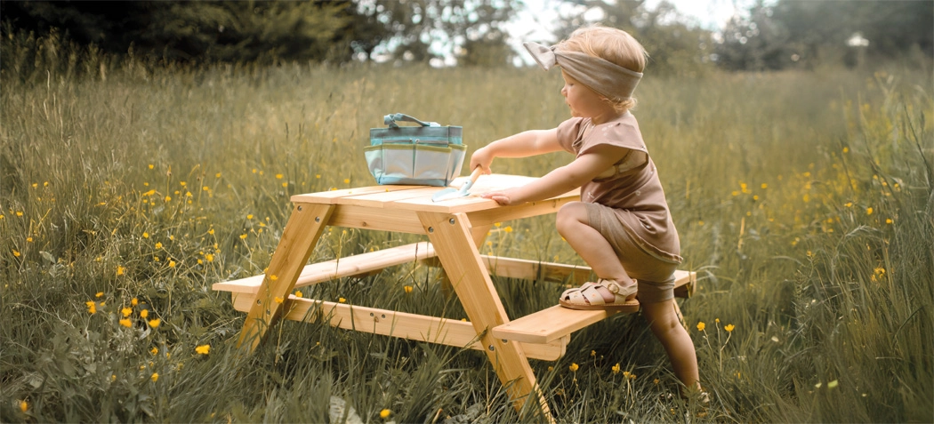 Doprajte deťom vlastné miesto na hry, tvorenie aj prvé pikniky. Detský piknikový stôl small foot z odolného masívneho dreva vyniká prirodzeným vzhľadom, robustnou A-konstrukciou a integrovanými lavičkami na oboch stranách. Zaoblené hrany a pohodlná výška sedu podporujú bezpečné a ergonomické sedenie.