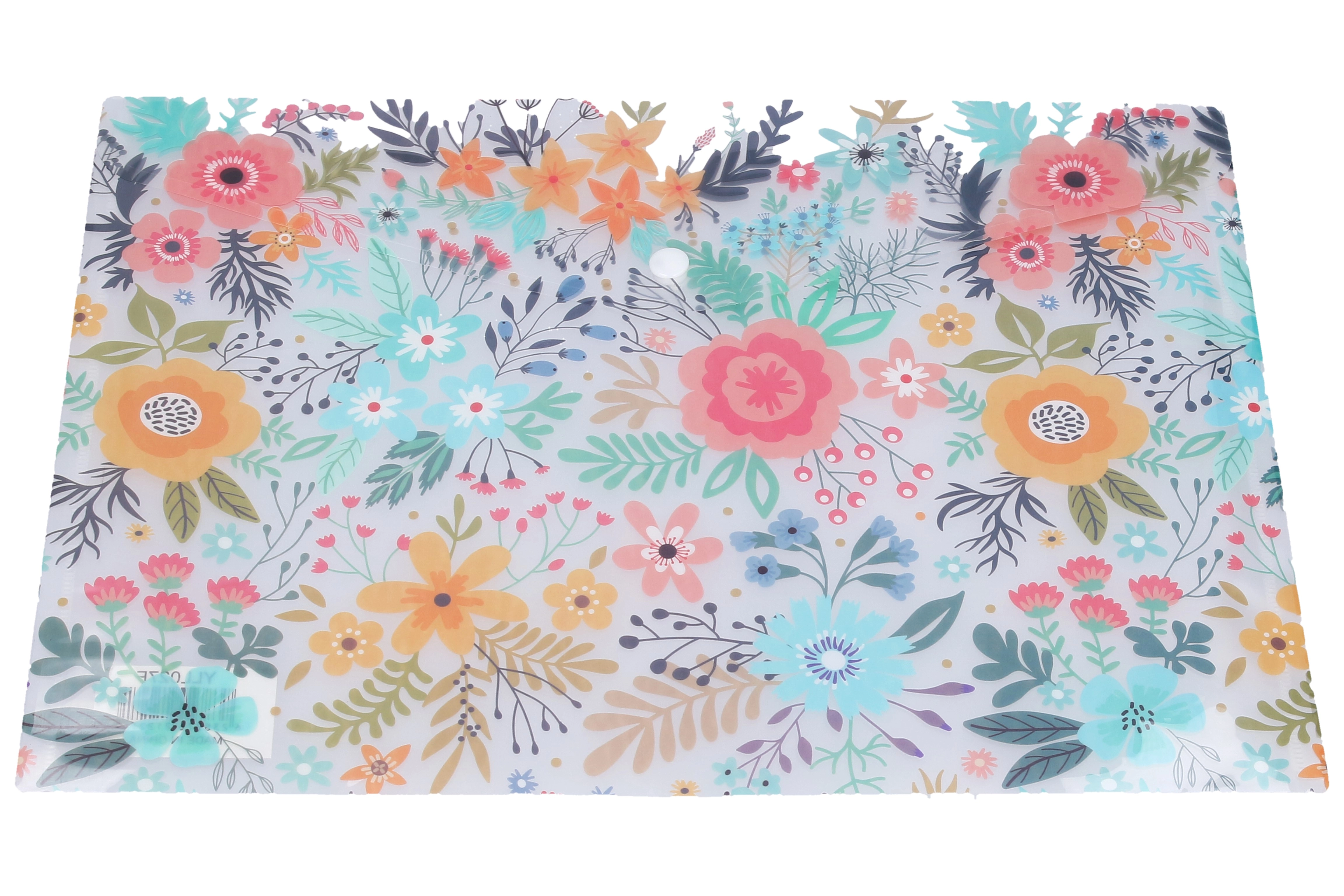 Udržte si poriadok v drobnostiach. Toto elegantné priehľadné puzdro s farebnými motívmi je ideálne na ukladanie účteniek, vizitiek, cestovných lístkov či poznámok. Zapínanie na cvok spoľahlivo chráni obsah pred vypadnutím a nečistotami.