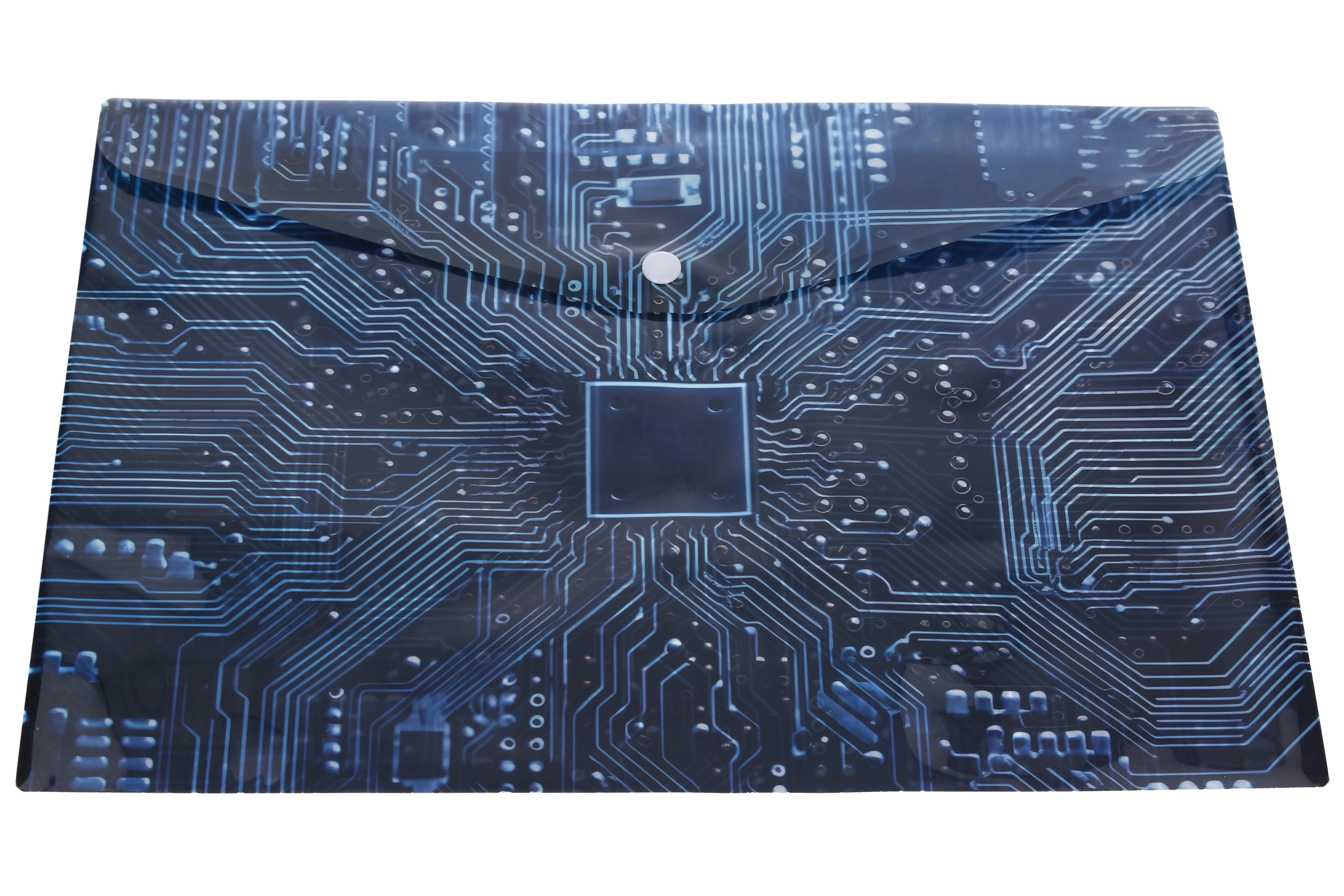 Dizajn s motívom základnej dosky dodáva puzdru moderný technický vzhľad a pomáha rozlíšiť obsah podľa farby. Kompaktný formát 10,5 × 7,5 cm sa ľahko zmestí do vrecka, peňaženky či menšej priehradky v batohu.