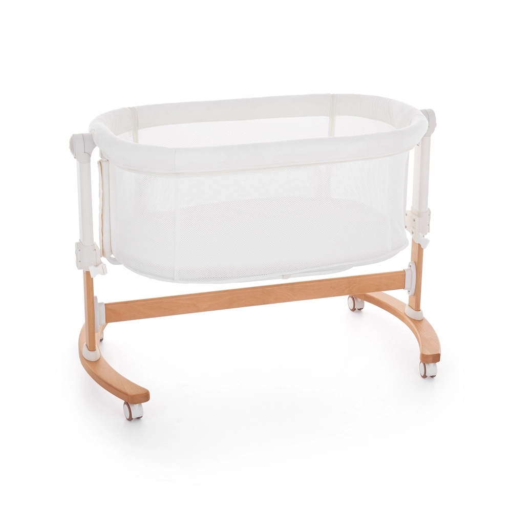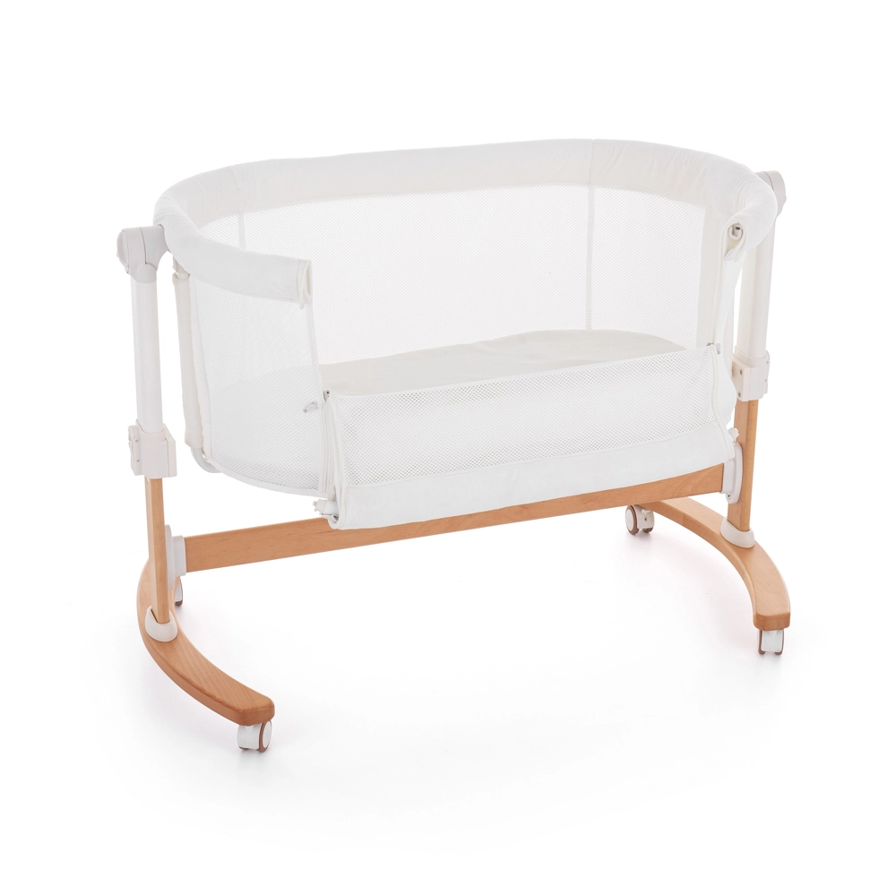 Odnímateľná bočnica a 5 polôh výšky umožnia zarovnať postieľku k rodičovskému matracu a mať bábätko na dosah ruky – pohodlné nočné dojčenie aj starostlivosť.