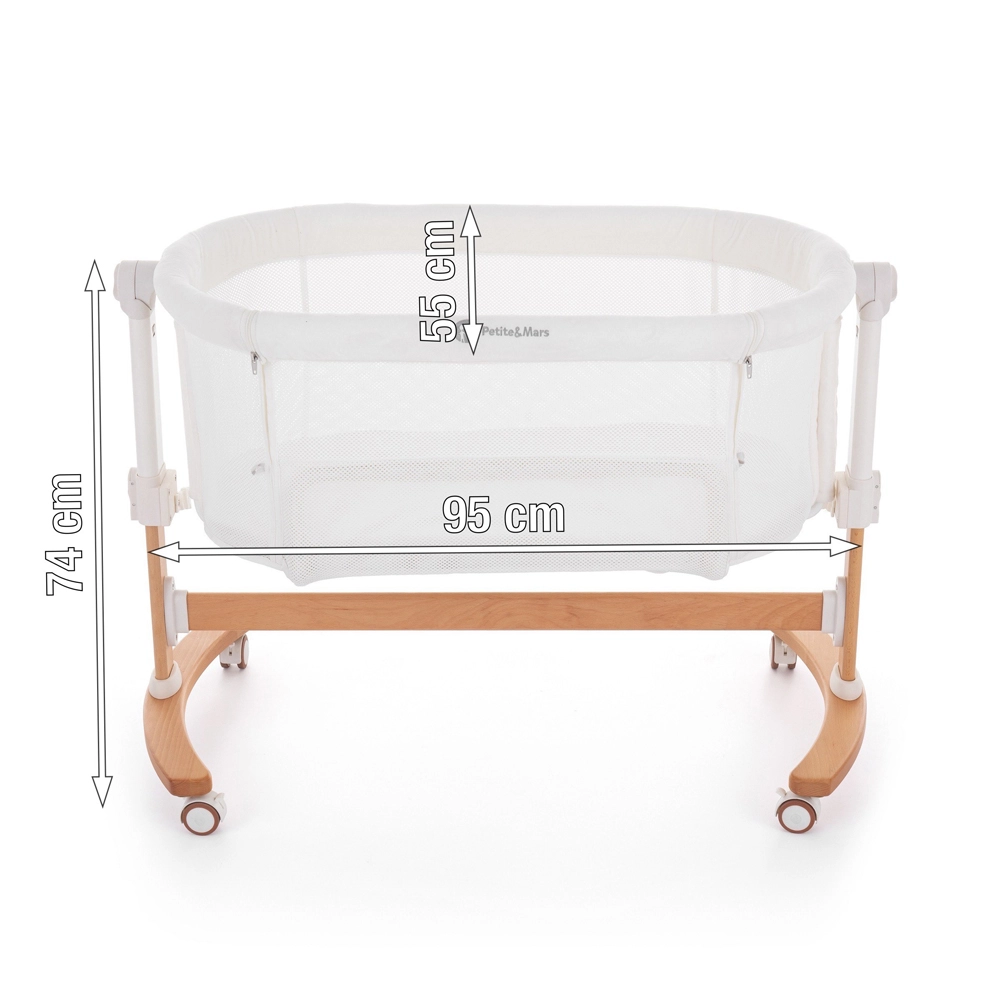 Praktická detská postieľka Glory 2v1 od PETITE & MARS na bezpečné spanie bábätka hneď pri vašej posteli. Ponúka prístelkové spanie aj funkciu kolísky, priedušné sieťované bočnice, 5 úrovní výšky a kolieska s brzdou na ľahké presúvanie. Súčasťou je pohodlný matrac s prateľným poťahom a štýlová buková konštrukcia v krémovom prevedení.