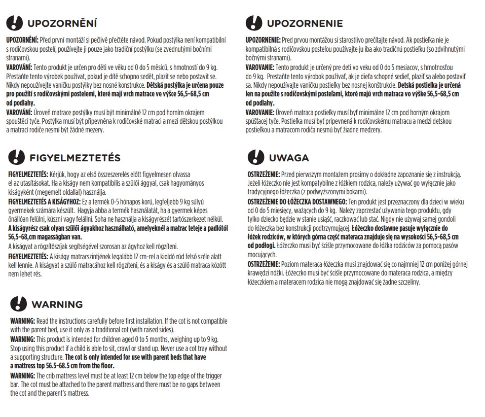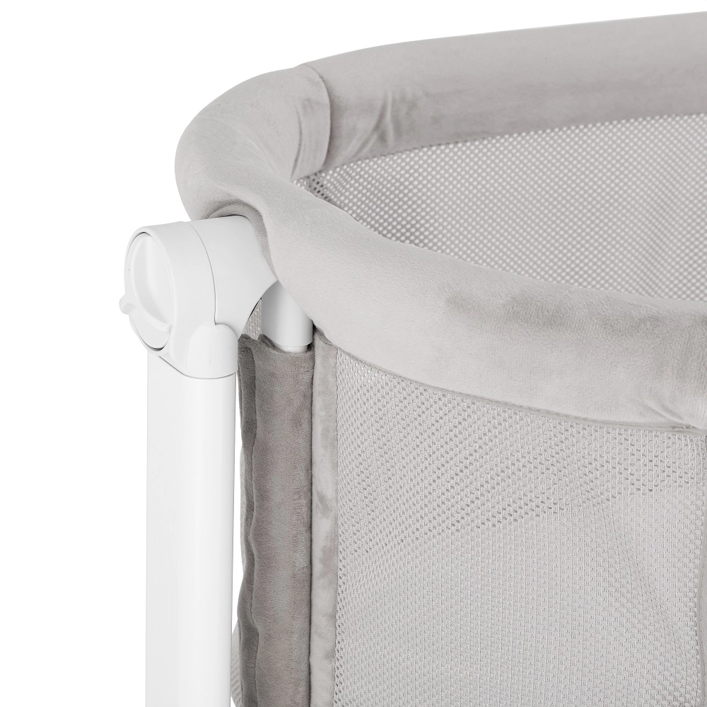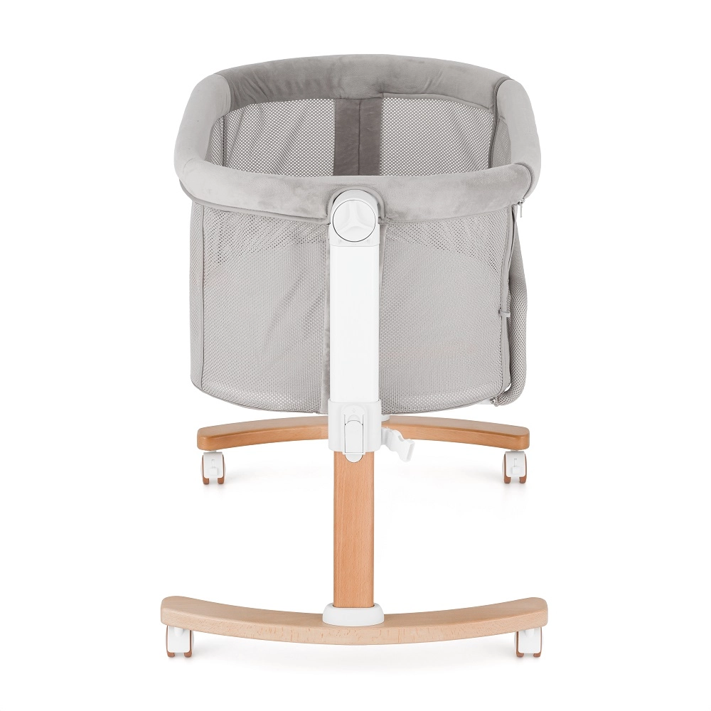 Výšku ľahko upravíte do 5 polôh, aby perfektne sedela k rodičovskej posteli (ideálne pre výšku vrchu matraca 56,5–68,5 cm). Základňa s kolieskami a brzdami umožní pohodlné presuny po byte. Pre pohodlie bábätka je súčasťou matrac s prateľným poťahom. Celú postieľku možno zložiť a uložiť do priloženej tašky, takže je ideálna aj na cesty.