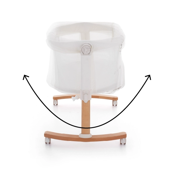 Integrovaná funkcia kolísky pomáha bábätku rýchlejšie zaspať. Stabilná drevená základňa s kolieskami a brzdami umožní plynulé hojdanie aj jednoduchý presun.