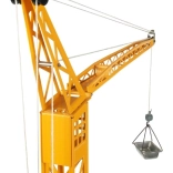 Žeriav je vybavený vežou, ktorú je možné otáčať, posuvným ramenom a systémom na zdvíhanie bremien. Poteší vás najmä ručný pohon kľukou, ktorý deťom umožní trénovať motorické zručnosti a koordináciu pohybov. Dĺžka ramena je 25 cm a celý žeriav meria 50 cm na výšku.