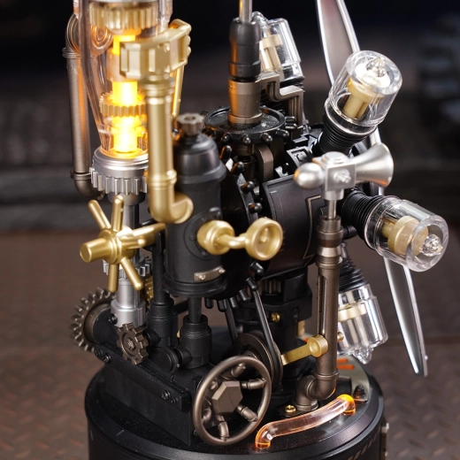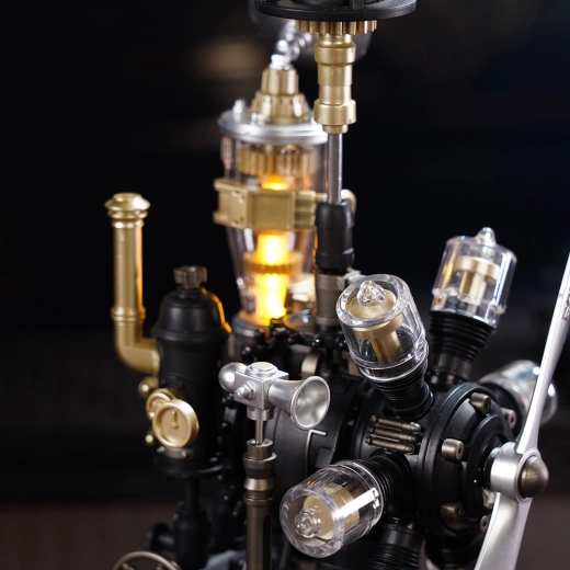 Integrované LED svetlo a simulácia pary umocnia steampunkovú atmosféru. Model sa stane výraznou dekoráciou doma aj v kancelárii.