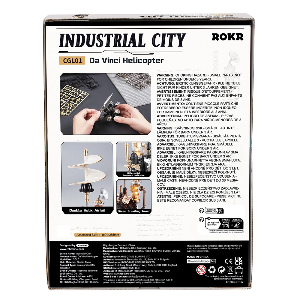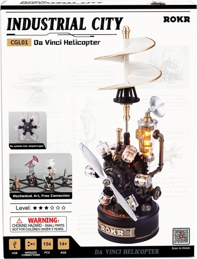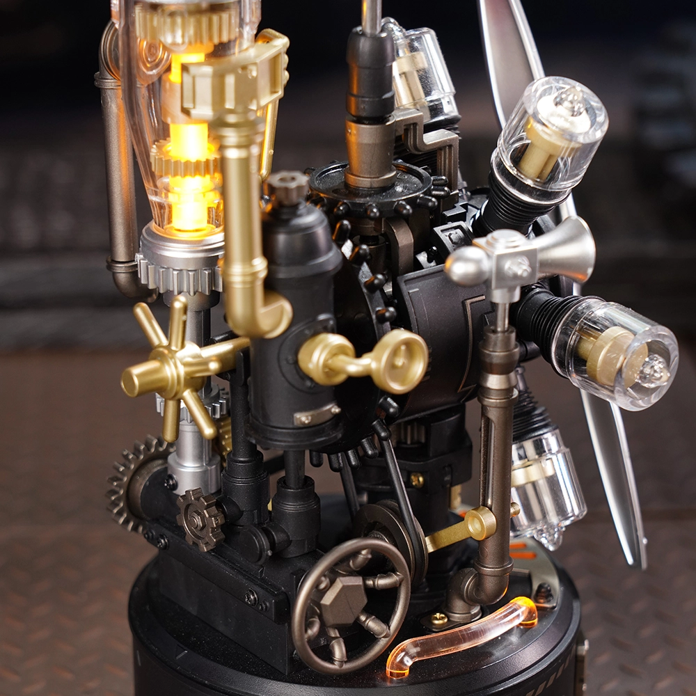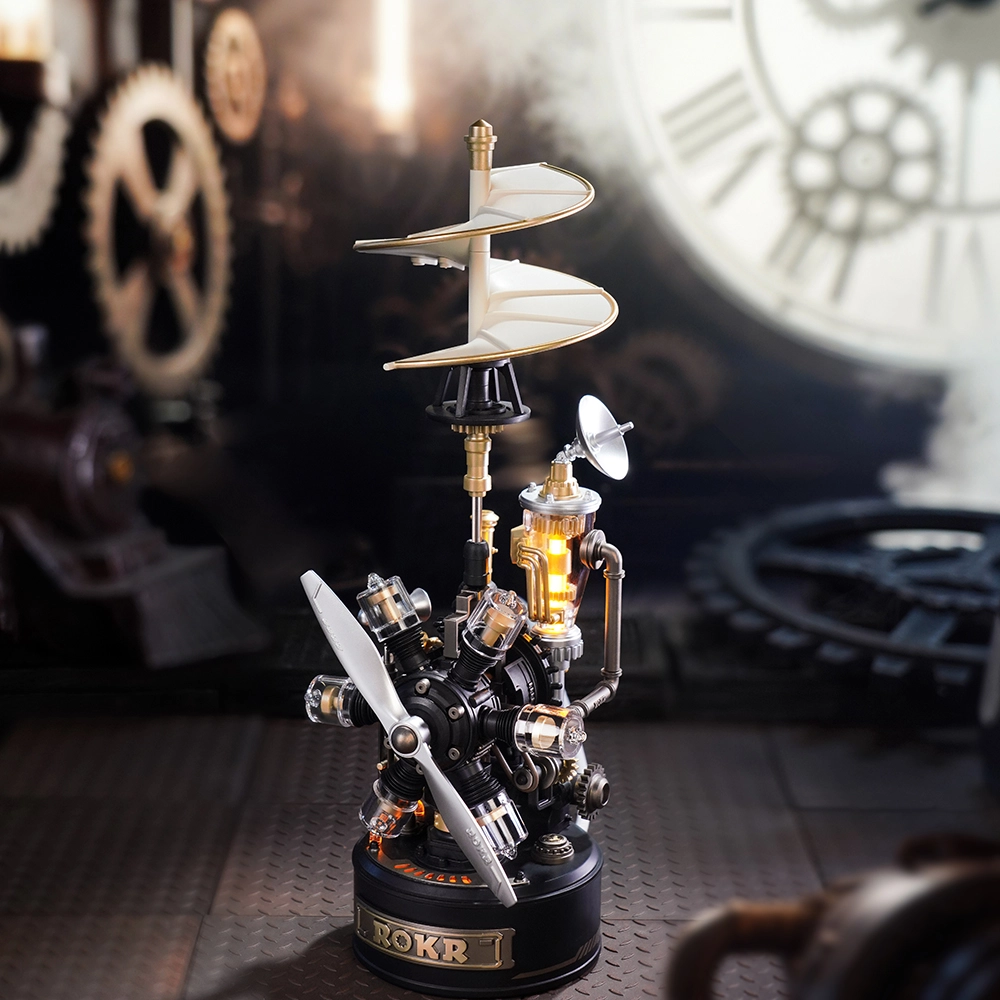 Táto 3D mechanická skladačka v štýle steampunkovej renesancie prináša jedinečný pohľad do sveta raných leteckých vízií. Po zostavení sa roztočia vrtuľa aj prevody, zatiaľ čo LED osvetlenie a „parný“ efekt dodajú modelu živý, realistický charakter. Vďaka intuitívnemu návodu a očíslovaným dielom si stavbu užijú zruční začiatočníci aj skúsení modelári.