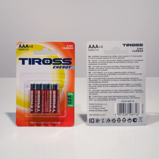 - Univerzálna veľkosť AAA (R03P) s napätím 1,5 V