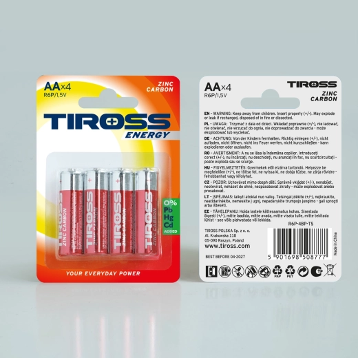 Spoľahlivé zinkovo-uhlíkové batérie AA 1,5 V na každodenné použitie v menej náročných zariadeniach. Praktické balenie 4 ks zaistí dostatok energie pre diaľkové ovládače, budíky či hračky za skvelú cenu.