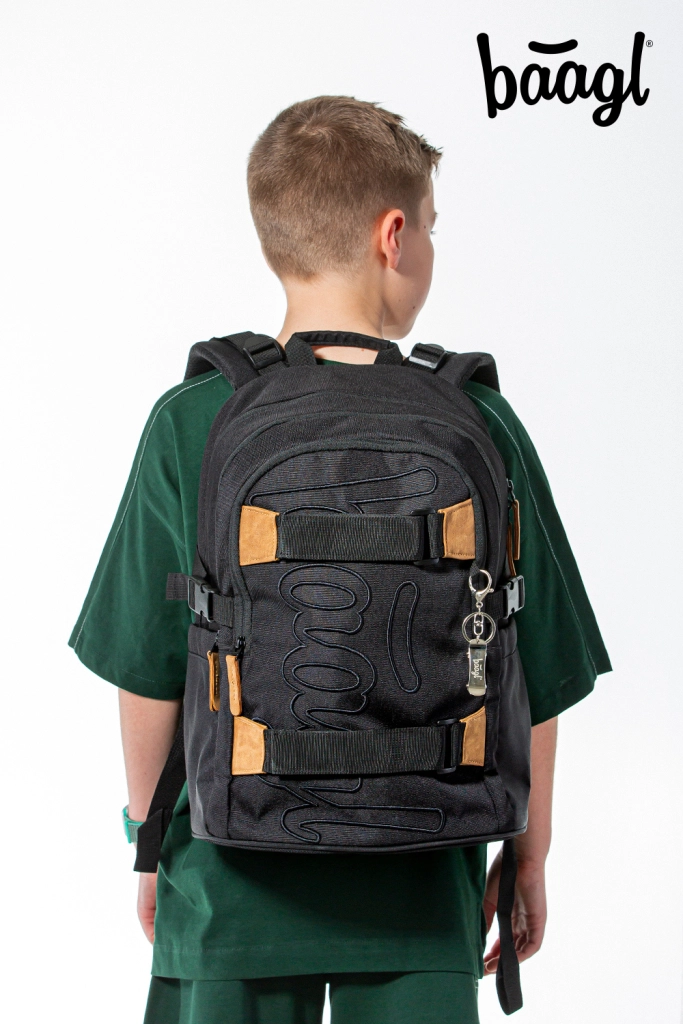 Školský batoh SKATE DARKNESS ponúka tri komory s organizérom a polstrovaným vreckom na 15" notebook či tablet. Má ergonomicky tvarovaný chrbát, plne nastaviteľné ramenné, hrudné a bočné kompresné popruhy a dva predné popruhy na uchytenie skateboardu. Batoh váži iba 850 g, má objem 25 l a nosnosť 7 kg. Vyrobený z pevného vodoodolného recyklovaného materiálu, osadený zipsami YKK, doplnený reflexnými prvkami a kovovým príveskom v tvare skejtu. Rada SKATE je testovaná a certifikovaná v akreditovanom laboratóriu.