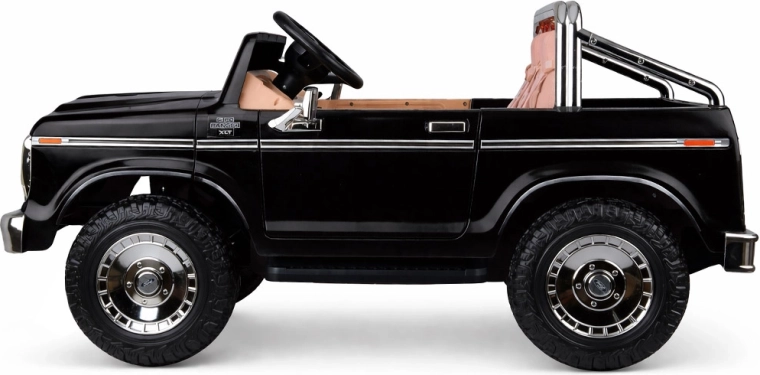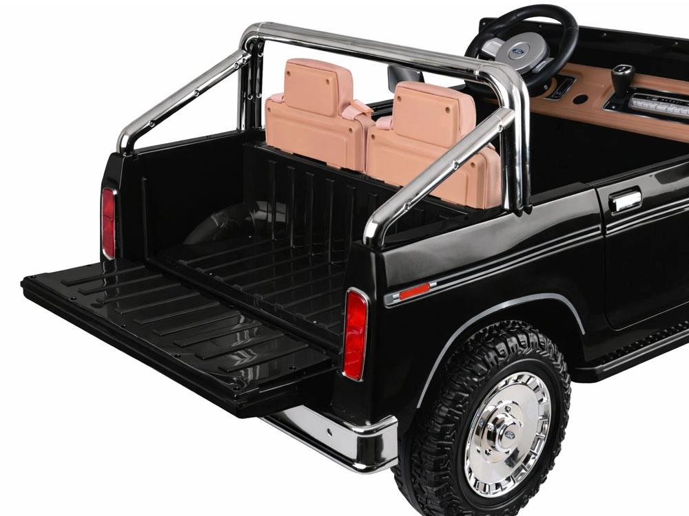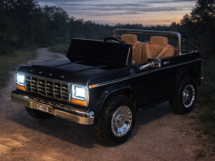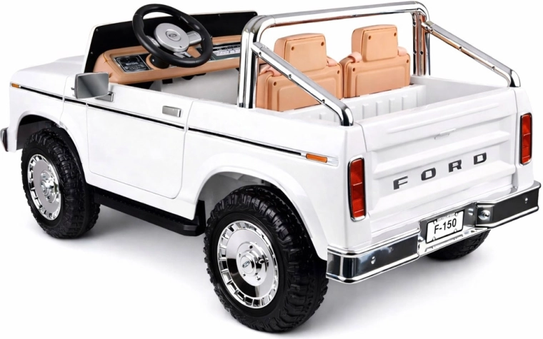 Štýlové elektrické autíčko pickup v štýle klasického FORD BRONCO prináša retro dizajn, miesto pre dve deti a bezpečnú jazdu s pásmi, plynulým rozjazdom a automatickou brzdou. Ponúka otváracie dvere, elegantné sedadlá, svetlá a bohatú multimediálnu výbavu vrátane Bluetooth, FM rádia a USB/MP3. Súčasťou je aj diaľkové ovládanie pre rodičov.