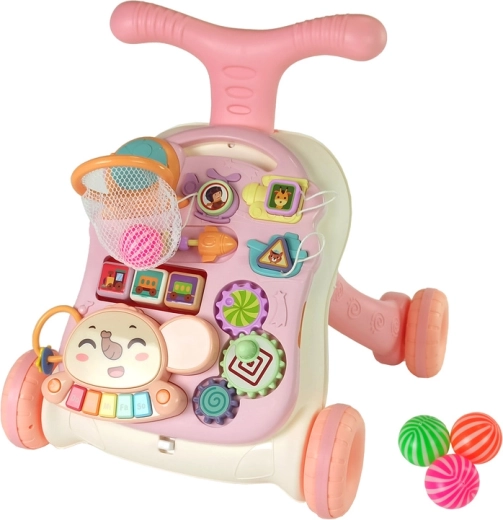 Interaktívne chodítko a hrací stolík 2v1 ružový