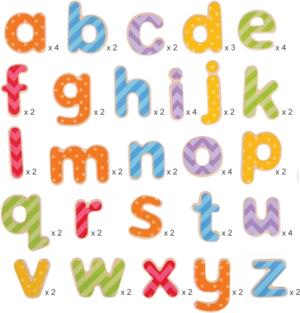 Obsahuje 63 dielikov, ktoré umožňujú deťom učiť sa písmená hravým a pútavým spôsobom.