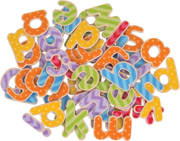 Zábavná a vzdelávacia hračka pre deti - farebné magnetické písmená z dreva, ktoré pomáhajú rozvíjať pravopisné schopnosti a kreativitu. Obsahujú 63 kusov pre nekonečnú zábavu.