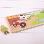 Magnetické puzzle farma Bigjigs Toys je ideálnou voľbou pre prvé tvorivé hranie. Od traktora po psíka – rôzne dieliky dovoľujú zakaždým vytvoriť inú scénu, čo dáva deťom veľa priestoru pre fantáziu. Pevné drevené magnety ľahko držia na magnetickej základnej doske aj na chladničke.