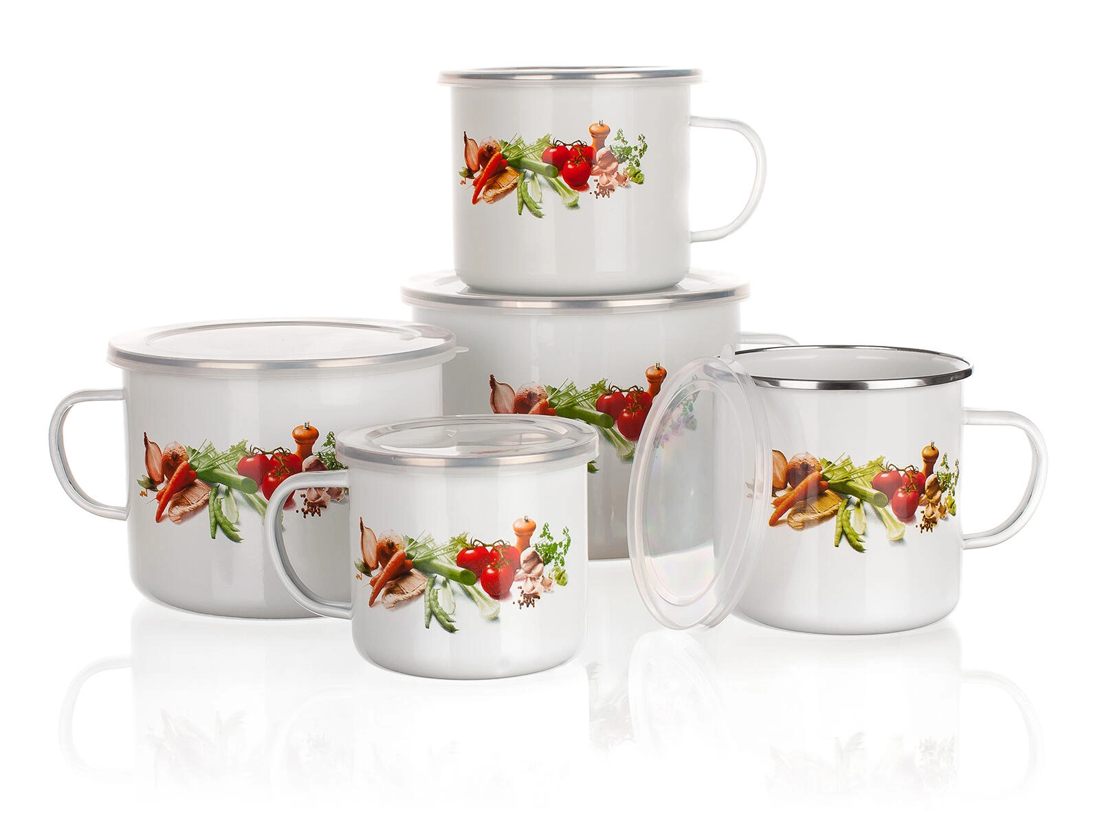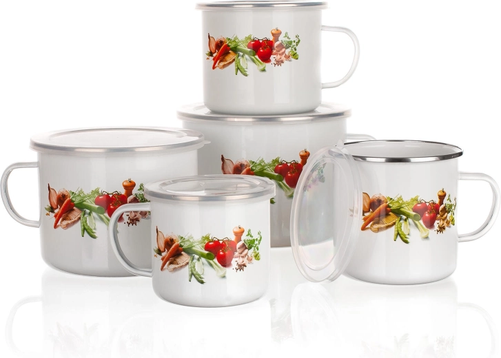 Tento smalťovaný hrnček s bielym povrchom a veselým dekorom zeleniny poteší svojou odolnosťou, nízkou hmotnosťou aj jednoduchou údržbou. Praktické plastové viečko pomôže udržať nápoj dlhšie teplý, ochráni obsah pri prenášaní a hodí sa aj na krátkodobé uchovanie nápoja či pokrmu.