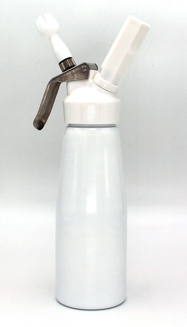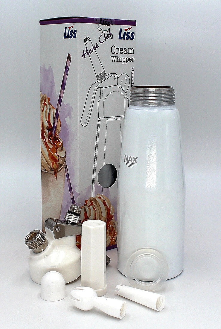 Objavte pohodlie domácej prípravy šľahačky so šľahačkovou fľašou LISS Home Chef s objemom 0,5 l. Hliníkové telo s bielym lakom a vnútornou povrchovou úpravou zaisťuje dlhú životnosť a jednoduchú údržbu. Odporúčané množstvo smotany 250–400 ml prináša optimálnu nadýchanosť, maximálny objem zmesi je 500 ml.