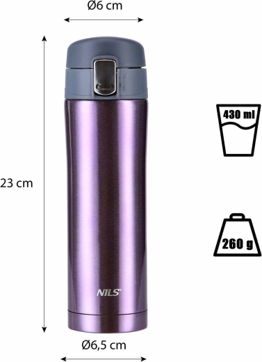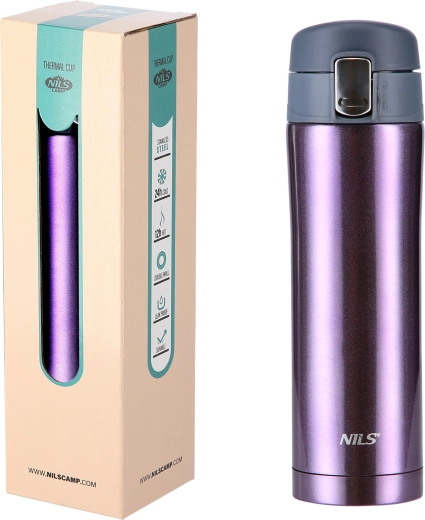 Užite si svoj obľúbený nápoj v ideálnej teplote po celý deň. Termoska NILS Camp v elegantnej fialovej farbe kombinuje odolnú nehrdzavejúcu oceľ s vákuovou izoláciou pre maximálny tepelný výkon a dlhú životnosť. Vďaka kompaktným rozmerom skvele sadne do držiaka nápojov aj do batohu.