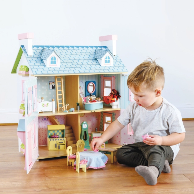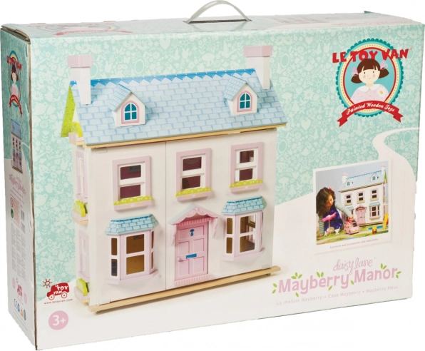 Luxusný trojposchodový ručne maľovaný drevený domček Mayberry Manor. Jednotlivé izby sú odlišne zdobené. Obsahuje schodisko prechádzajúce stredom domčeka. Izby sú oddelené priečnou stenou. Domček má funkčné otváracie okná, okenice a dvere. Domček je možné otvoriť z jednej strany. Strecha je z polovice odnímateľná a možno ju použiť ako predzáhradku, spodná strana strechy je vhodne ilustrovaná. Domček ponúka veľký priestor na hranie a rozvoj kreativity. Domček je určený pre bábiky do 15 cm. Nábytok do domčeka nie je súčasťou balenia, možno ho dokúpiť z našej ponuky rovnako ako bábiky a vonkajšie hracie prvky vrátane podložky. Vybavenie domčeka nie je súčasťou balenia. Domčeky Le Toy Van pre bábiky sú tvorené s láskou pre celoživotnú čarovnú hru. Používajú udržateľné postupy, etiku a vyrábajú krásne drevené hračky, ktoré dnes aj pre ďalšie generácie inšpirujú a rozvíjajú predstavivosť. Hlavné vlastnosti: Pomáha s rozvojom koordinácie pohybov, sociálnych zručností a rozvoja reči. Trojposchodový domček pre bábiky je možné dovybaviť nábytkom podľa vlastnej kreativity. Podporuje dlhodobú imaginatívnu hru. Zlepšuje koordináciu v zábavnom prostredí. Vyrobené eticky z udržateľného dreva. Rodovo neutrálne prevedenie nabáda k zdieľaniu medzi súrodencami. Dekorované netoxickými farbami, testované podľa najprísnejších štandardov. Kolekcia Daisylane. Prestížna kolekcia domčekov pre bábiky a doplnkov firmy Le Toy Van. Pred viac než 25 rokmi zakladateľ Georges navrhol svoj úplne prvý domček pre bábiky, stavebný kameň tejto firmy. Vyrobené eticky z udržateľných materiálov, drevené domčeky pre bábiky Daisylane sú jedinečné a nebudú detskú predstavivosť držať späť. Rodinné dedičstvo, skutočná investícia do hrania.