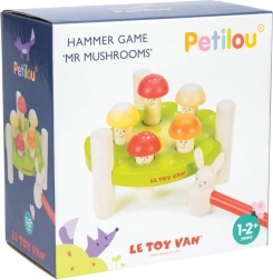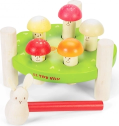 Hračka rozvíja motorické zručnosti tým, že deti používajú kladivko na pribíjanie muchotrávok. Farebné dizajny a tvary stimulujú zrakové vnímanie.