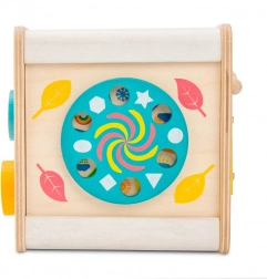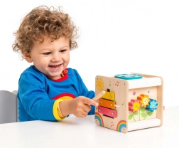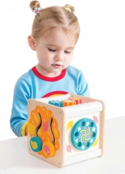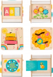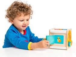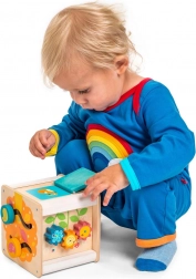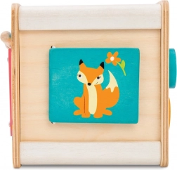 Motorická kocka Le Toy Van Petilou je nielen esteticky príťažlivá vďaka svojim pestrým farbám a precíznym ilustráciám, ale tiež praktická pre rozvoj detských zručností. Obsahuje: