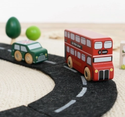 Objavte svet rušných londýnskych ulíc s detailne spracovanými drevenými vozidlami od Le Toy Van. Sada zahŕňa dvojposchodový autobus, čierny taxík, hasičské auto, sanitku, policajné vozidlo a dve osobné autá. Robustné prevedenie z udržateľného kaučukového dreva a hladké hrany sú ideálne pre malé detské ruky, ktoré si pri hre precvičia úchop, koordináciu ruka–oko aj fantáziu.
