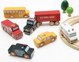 Vozidlá sú vyrobené eticky z FSC certifikovaného dreva a ručne domalované ekologickými farbami. Vďaka kompatibilite s populárnymi drevenými dráhami ľahko rozšírite detský svet o ďalšie prvky a trasy. Sada je navrhnutá tak, aby vydržala každodenné hranie a podporovala kognitívne zručnosti.