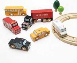 Školský autobus, hasičské auto, sanitka, policajné auto, taxík a kĺbový nákladiak tvoria pestrú sadu, ktorá inšpiruje k príbehom z rušných ulíc mesta.