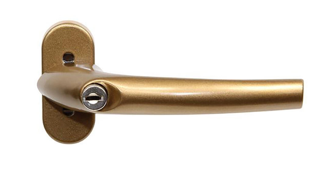 Bezpečná a elegantná kľučka pre plastové okná a dvere s integrovaným zámkom. Ponúka jednoduché uzamknutie zatlačením vložky, možnosť zamknutia aj vo zvislej polohe vetrania a aretáciu po 45° pre pohodlné ovládanie. Odolné hliníkové prevedenie s povrchom F4 – bronzový fluorocarbon skvele ladí s modernými interiérmi.