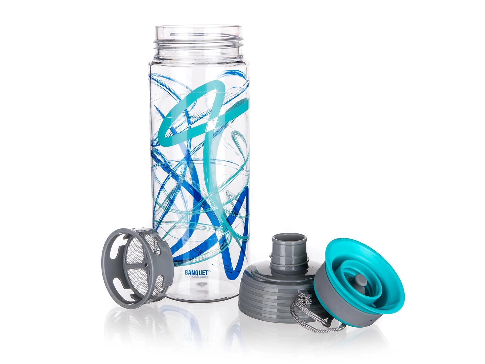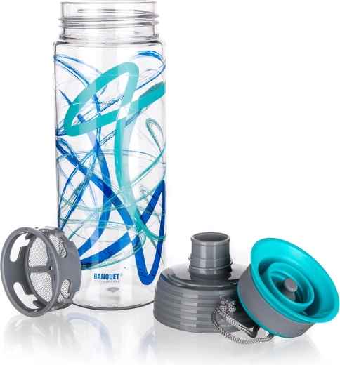 Integrované nerezové sitko 304 (18/8) zachytí ovocie, bylinky alebo čajové lístky a umožní pripraviť osviežujúce infused nápoje bez nežiaducich kúskov pri pití. Vďaka praktickému pútku ju ľahko prenesiete a tyrkysové akcenty s potlačou dodajú fľaši svieži vzhľad.
