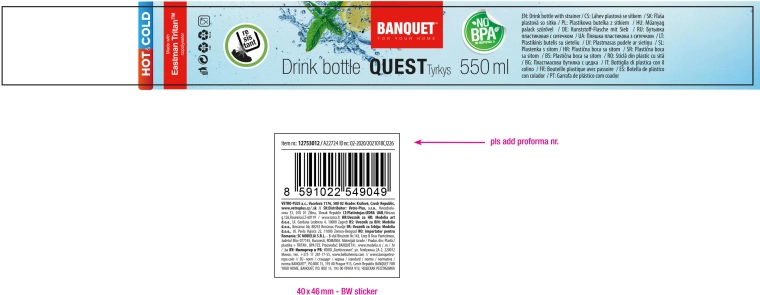 Užite si čistú chuť nápoja bez pachov a príchutí vďaka prémiovému materiálu TRITAN, ktorý je ľahký, mimoriadne odolný a vhodný na studené aj horúce nápoje. Fľaša BANQUET QUEST s objemom 550 ml má široké hrdlo na ľahké plnenie aj čistenie a spoľahlivé viečko proti pretekaniu – ideálne na cesty, do školy, do kancelárie aj na tréning.