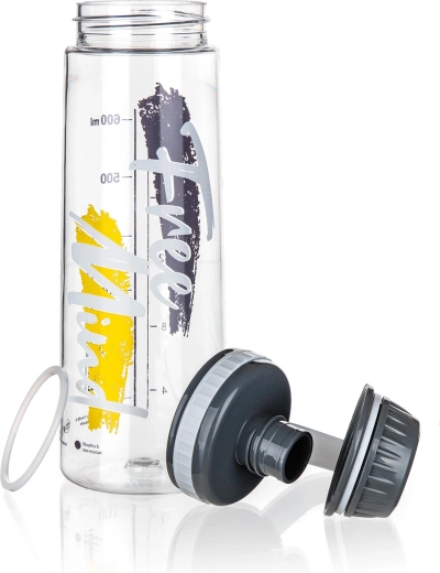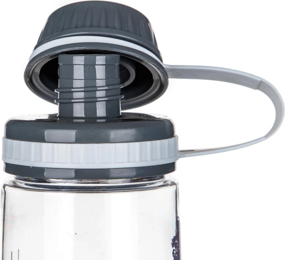 Široké hrdlo uľahčuje nalievanie vody, pridanie ľadu aj jednoduché čistenie. Kvalitná plastová konštrukcia (Tritan + PP viečko) je vhodná na studené aj teplé nápoje a neabsorbuje pachy. Minimalistický dizajn so sivou potlačou sa hodí do kancelárie, fitness aj na cesty.