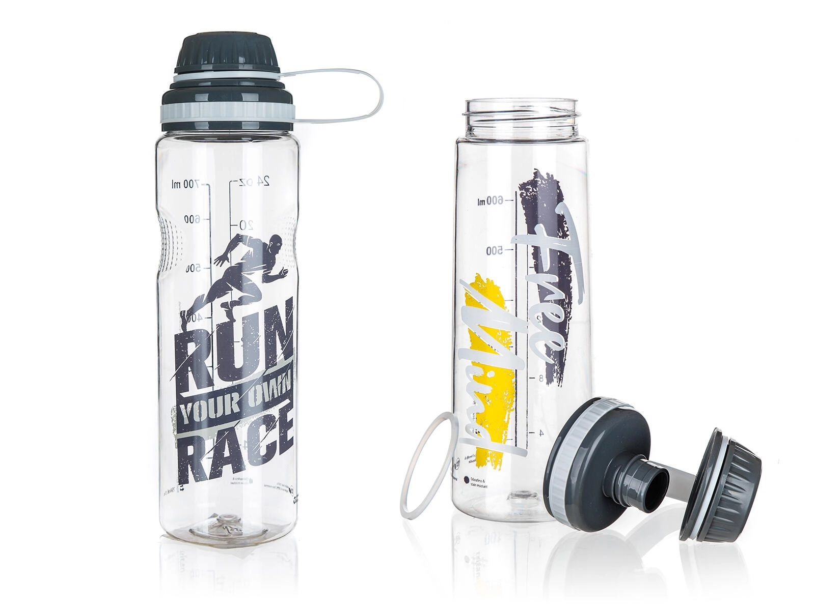 Závitové viečko z PP plastu je vodotesné, takže fľašu bezpečne prenesiete v batohu či športovej taške bez rizika nechceného úniku.