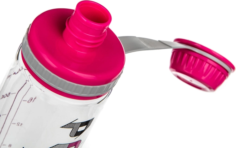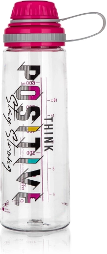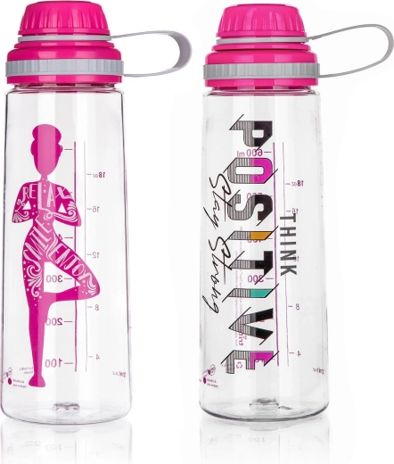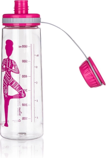 Presná stupnica pomáha sledovať denný príjem tekutín, ružová potlač YOGA dodá fľaši svieži vzhľad a športový štýl.