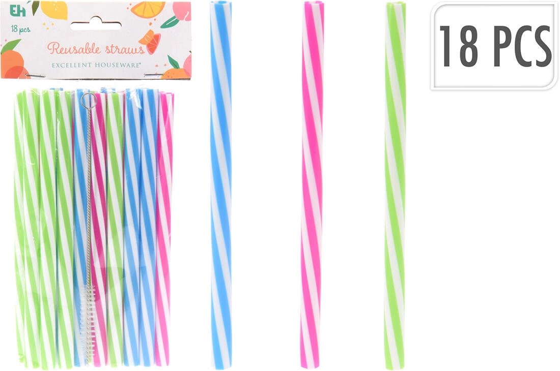 Praktická sada opakovane použiteľných slamiek v mixe farieb na každodenné pitie doma aj na cestách. Obsahuje 18 kusov slamiek a čistiaci kefka na jednoduchú údržbu. Slamky s priemerom 10 mm a dĺžkou 180 mm sú ideálne na smoothie, šťavy aj limonády. Vďaka odolnému prevedeniu sú vhodné na dlhodobé používanie a pomáhajú znižovať odpad z jednorazových slamiek. Opakované použitie, široký priemer 10 mm, mix farieb, ľahké čistenie.