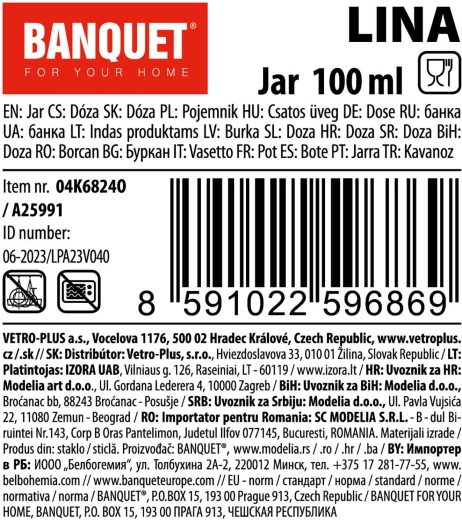 Sklenená dóza LINA 100 ml spája elegantný dizajn a každodennú praktickosť. Je perfektná na malé porcie potravín – od korenín a čajov po semienka či domáce nakladačky. Odolné číre sklo je hygienické, bez zápachu a umožňuje okamžitý prehľad o obsahu.