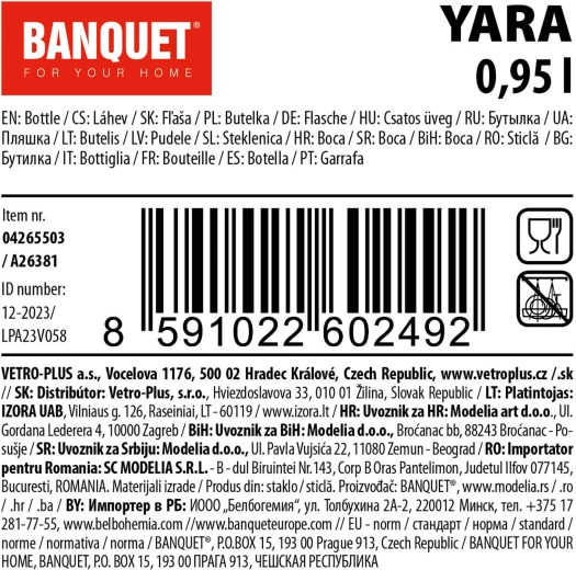 Sklenená fľaša Yara 950 ml kombinuje elegantný hranatý dizajn s praktickým pákovým (swing-top) uzáverom na spoľahlivé a opakované uzatváranie. Číre, hladké sklo je hygienické, ľahko sa čistí a skvele sa hodí na domáce likéry, destiláty, oleje alebo sirupy.