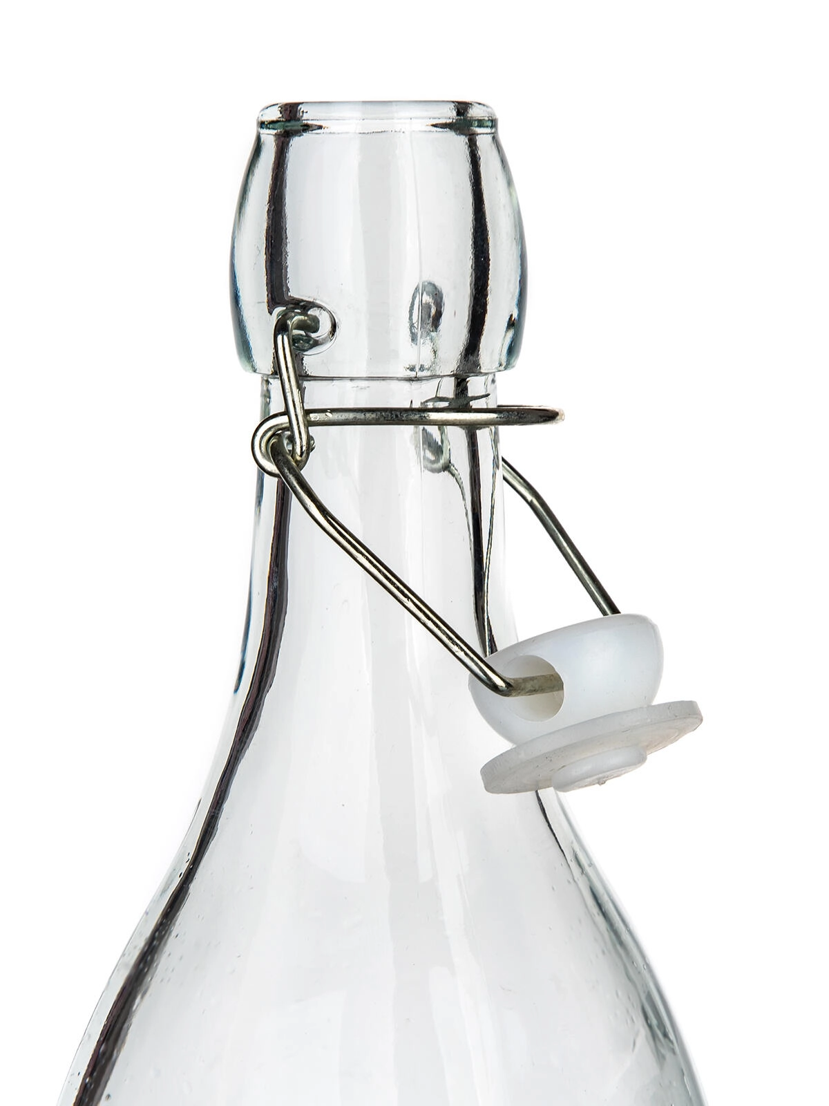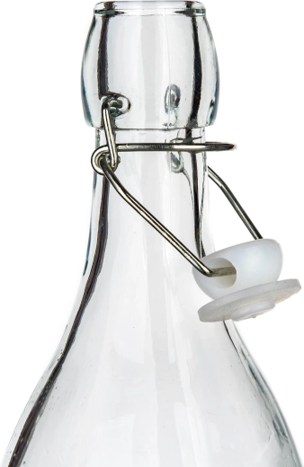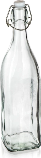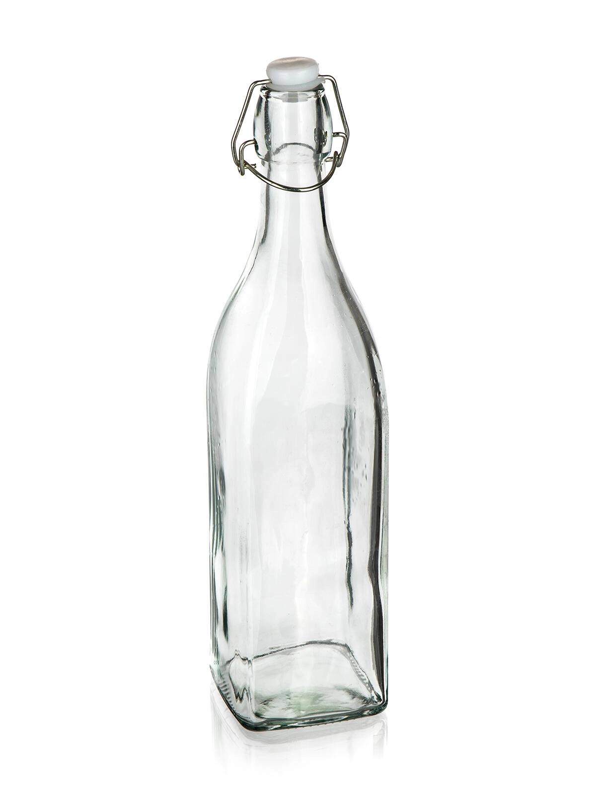 Vďaka stabilnej hranatej základni sa fľaša nehojdá a šetrí miesto v špajzi aj chladničke. Kovová spona s bielym viečkom a tesnením zaistí, že aróma aj chuť zostanú vo vnútri. Fľaša je vhodná na každodenné používanie aj ako darčekové balenie domácich špecialít.
