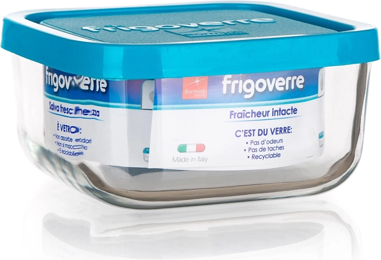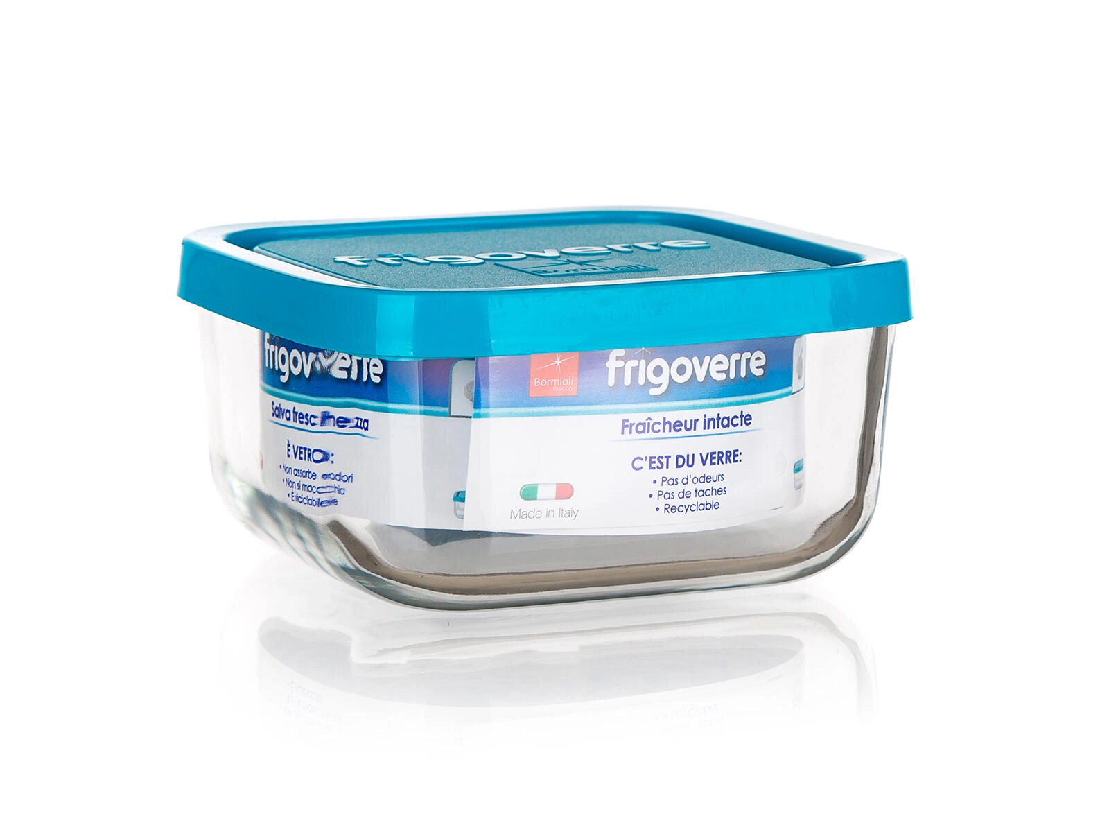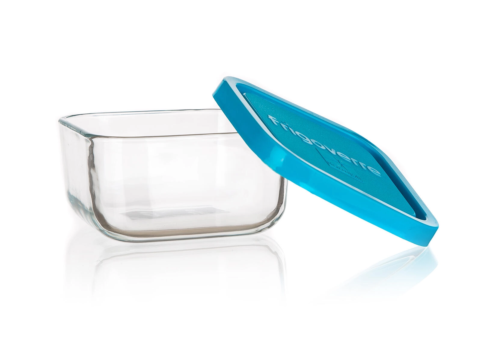 Dóza FRIGOVERRE kombinuje kvalitné sklo s pevným polypropylénovým viečkom v modrej farbe. Štvorcový tvar s rozmermi 19 × 19 × 8 cm šetrí miesto v chladničke aj v špajzi a objem 2 litre je perfektný na hotové jedlá, šaláty, suroviny alebo zvyšky z večere.
