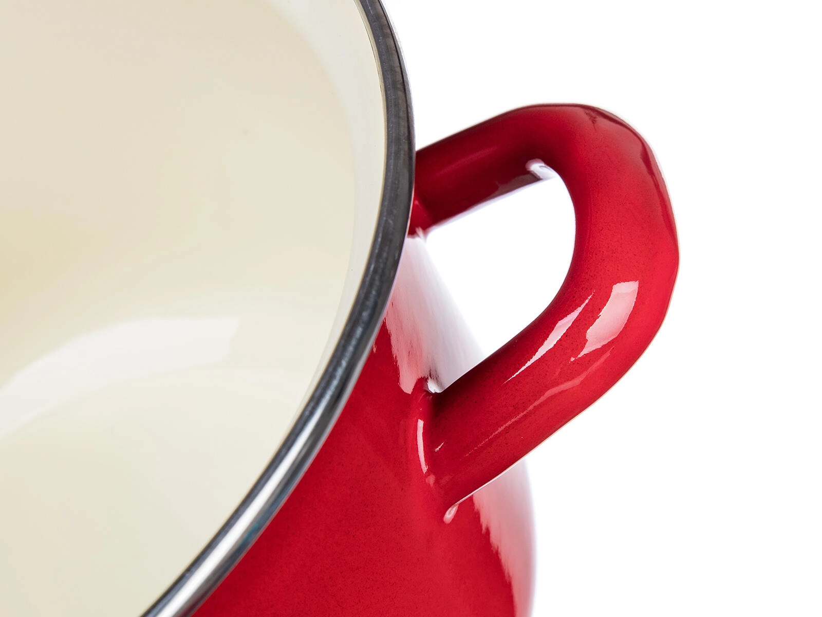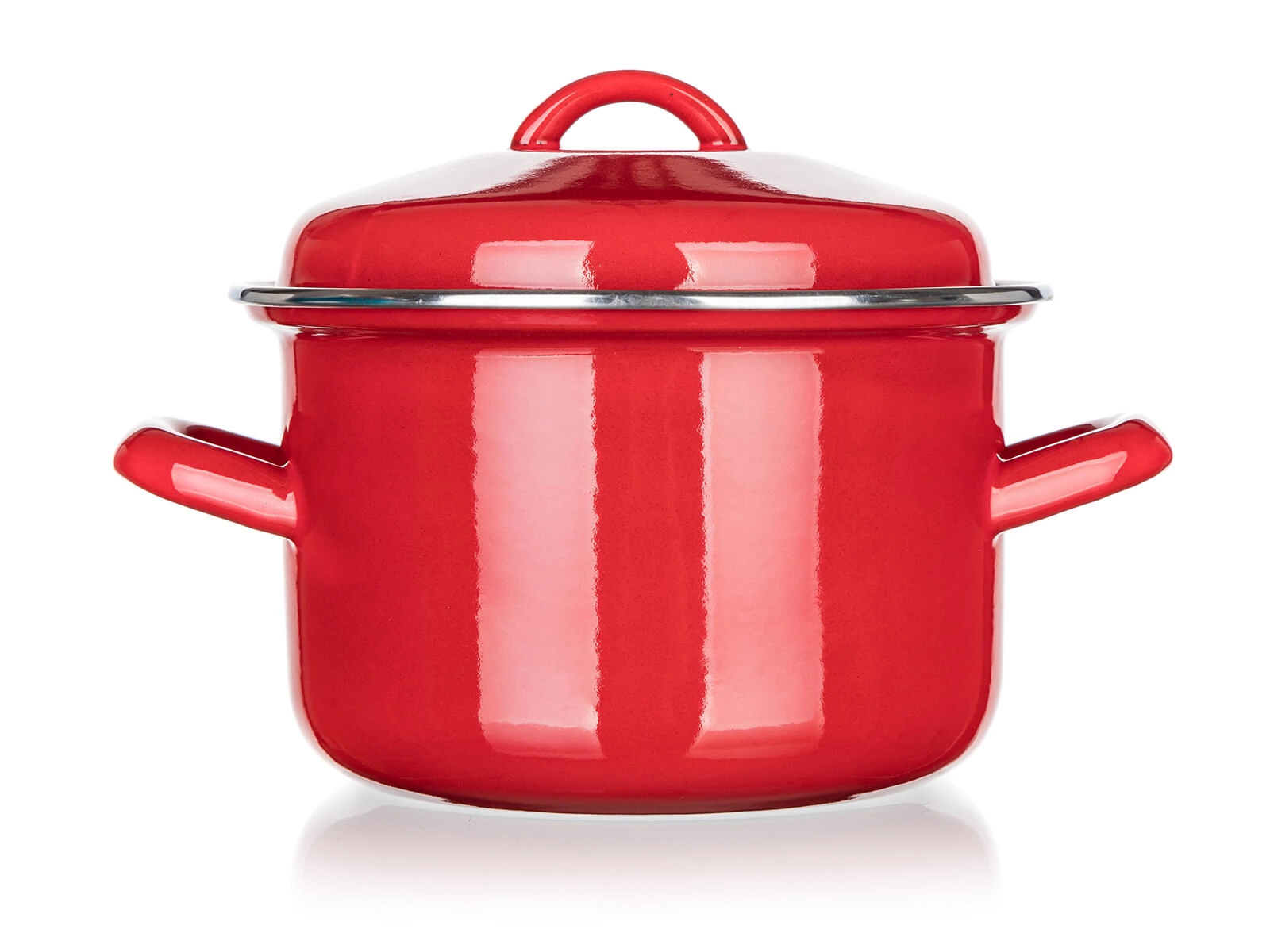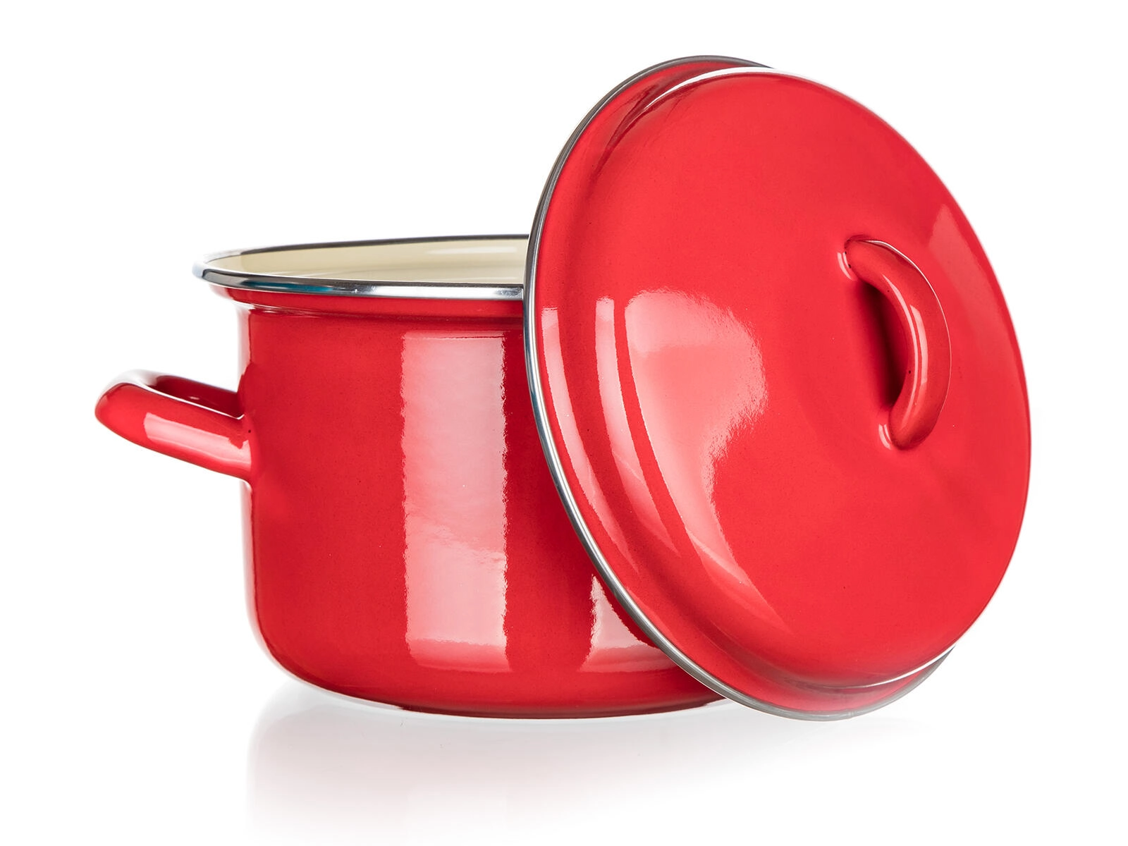 Červený smalt z vonkajšej strany a krémový interiér odolávajú škvrnám a uľahčujú údržbu. Povrch je hladký, hygienický a farebne stály.