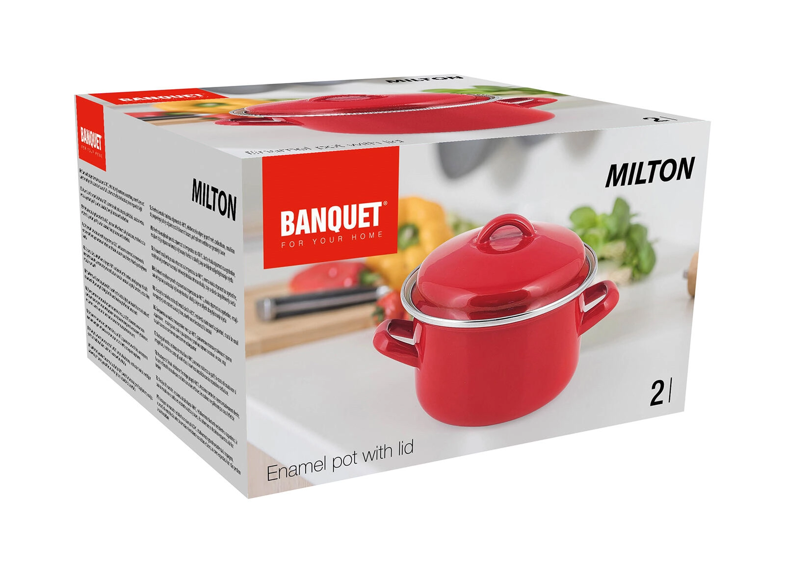 Praktický smaltovaný hrniec MILTON s objemom 2 l a priemerom 16 cm je ideálny na každodenné varenie polievok, omáčok aj príloh. Odolná smaltovaná glazúra v elegantnej červenej farbe s krémovým vnútrom sa ľahko čistí a zaisťuje dlhú životnosť. Vďaka kompatibilite so všetkými typmi varných dosiek vrátane indukcie je univerzálnym pomocníkom do každej kuchyne.