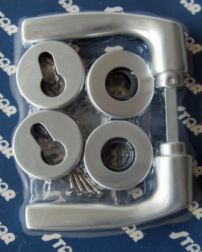 Elegantné rozetové kovanie MONET pre interiérové dvere ponúka moderný vzhľad, odolný strieborný eloxovaný povrch a pohodlné uchopenie. Vybavené pre cylindrickú vložku a dodávané v praktickom blistri s kompletným montážnym materiálom.