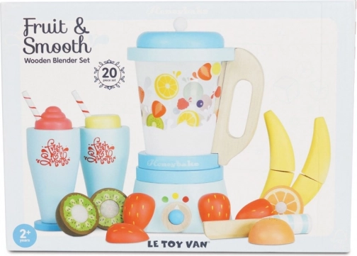 Namixujte deťom zdravú porciu zábavy s dreveným smoothie mixérom LE TOY VAN. Sada obsahuje klasický mixér s odnímateľnou nádobou, 6 kusov krájateľného ovocia na suchý zips, drevený nožík a 2 poháre so slamkami. Vyrobené z FSC certifikovaného dreva, ručne domaľované netoxickými farbami na vodnej báze a ocenené za kvalitu a hernú hodnotu.