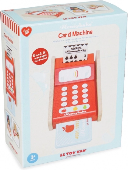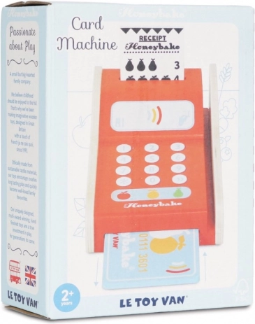 Detský platobný terminál z masívneho kaučukovníkového dreva doplní každú kuchynku či obchodík. Vďaka realistickému vzhľadu, tlačidlám a slotu na kartu si deti precvičia sociálne zručnosti, komunikáciu aj prvé počty. Hračka je pevná, odolná a navrhnutá tak, aby vydržala každodenné hranie.