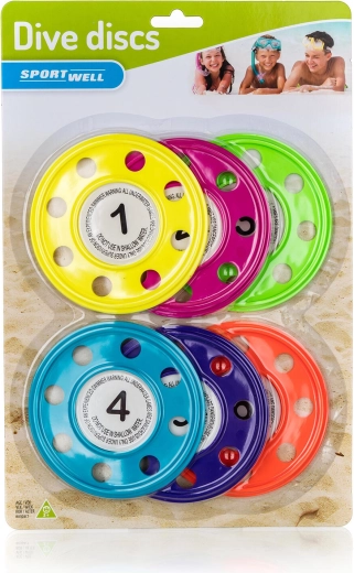 Zábavné a bezpečné potápačské disky do vody od SPORTWELL v praktickom balení 6 kusov sú skvelou voľbou na výučbu plávania aj vodné hry. Farebný mix (žltá, oranžová, ružová, modrá, tmavomodrá, zelená) pomáha deťom ľahko rozpoznať disky pod vodou a motivuje ich k pohybu. Vhodné pre deti od 3 rokov.