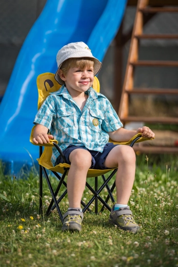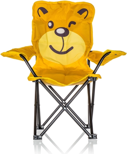 Rozkladacie detské kresielko s veselým motívom BEAR je ideálne na záhradu, kempovanie, piknik aj do detskej izby. Kombinuje pevný kovový rám s odolným textilným poťahom a vďaka ľahkej konštrukcii ho deti ľahko prenesú. Jasne žltá farba a roztomilá potlač medvedíka si získa každé dieťa.
