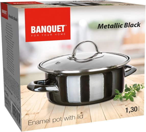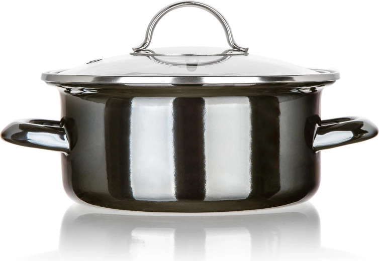 Elegantný smaltovaný hrniec v prevedení Metallic Black so sklenenou pokrievkou je ideálny na každodenné varenie. Ponúka priemer 18 cm, objem 1,3 l a je vhodný na všetky typy varných dosiek vrátane indukcie. Odolné prevedenie, jednoduchá údržba a prehľad o varení vďaka priehľadnej pokrievke.