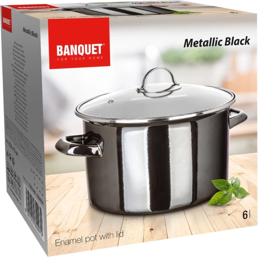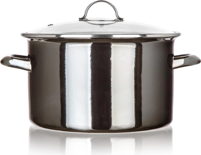 Objavte spoľahlivý smaltovaný hrniec, ktorý kombinuje klasický vzhľad s modernou funkčnosťou. Čierna metalíza dodá vašej kuchyni štýl, zatiaľ čo sklenená pokrievka umožní kontrolovať varenie bez zbytočného odklápania. Vďaka objemu 6 l pohodlne pripravíte výdatné polievky, vývary aj rodinné porcie dusených jedál.