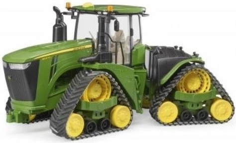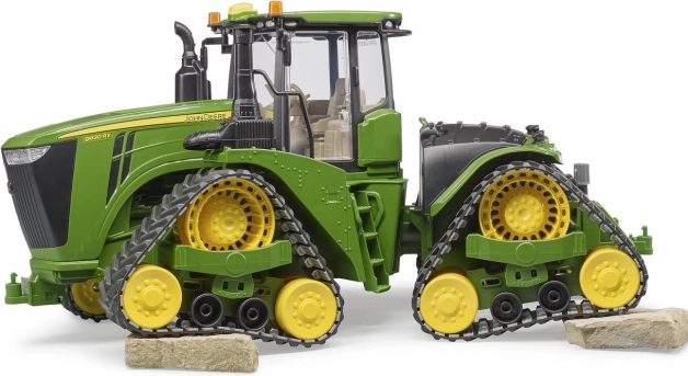 Pásový traktor John Deere 9620RX Bruder je vyrobený v mierke 1:16 a je dokonalou kópiou skutočného stroja. Disponuje otvárateľným krytom motora, otvárateľnými dverami kabíny a nastaviteľným volantom. Kabína je prispôsobená pre figúrky Bruder BWORLD.